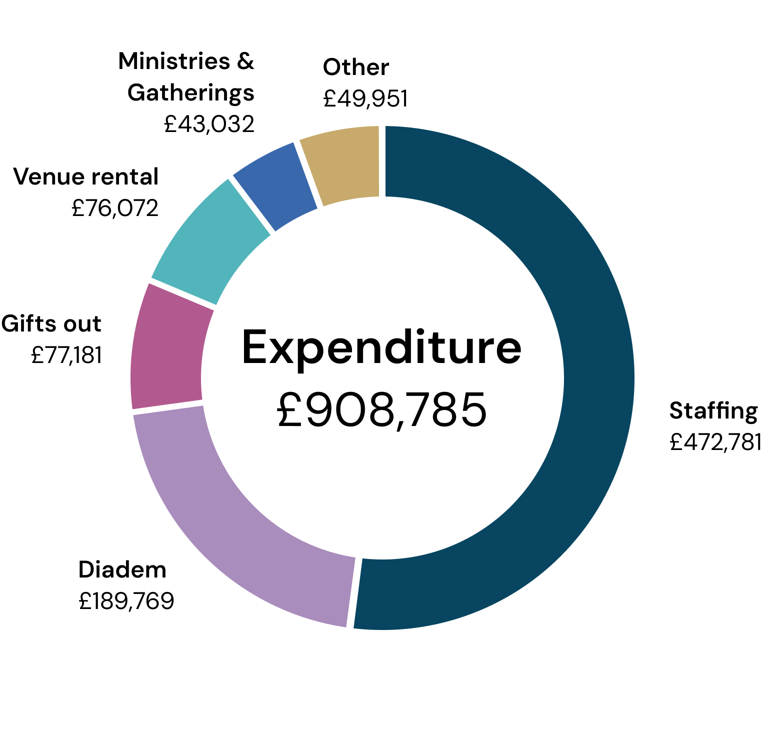 Expenditure: Diadem overheads contribute to budgeted monthly costs now being over £60,000. In order to achieve a balanced budget, all budgets for Communities, ministries, etc have had to be restricted. If income increases as hoped, we will be able to award salary increases during the year, which has not been possible in the past 2 years.