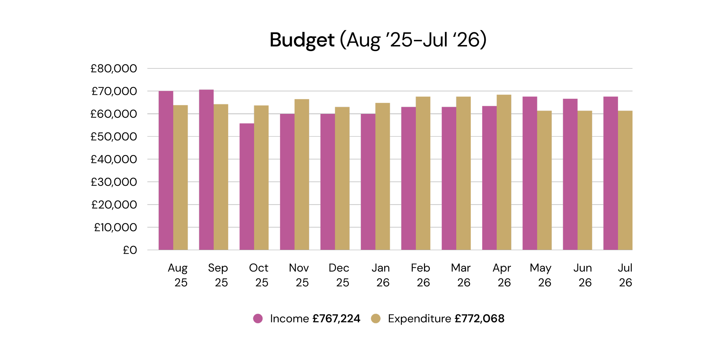 Budgeted expenditure stands at £772,068. With the added overheads of the Diadem, our monthly costs are now over £60,000. To maintain a balanced budget, spending for Communities, ministries, and other areas has been kept tight. If giving grows as planned, we hope to introduce salary increases later in the year—something we’ve been unable to do for the past two years.